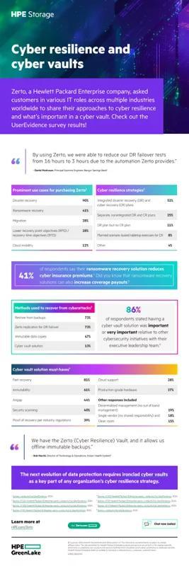 I created these infographics from UserEvidence surveys. I wrote the cyber resilience/cyber vault survey and aside from the infographic, developed a blog post, and delivered "hot leads" to sales.